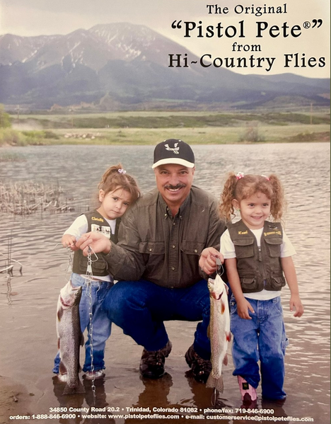 The Pistol Pete was born in 1972 from an idea of a young, twelve-year-old fly tier, named Chris Furia. By putting a small propeller on the front of a fly, Chris thought it would give the fly more action and movement, similar to that of a small lure, yet still allow it to be fished as a fly. Chris's first Pistol Petes were used by his family and friends on weekend fishing trips to the mountain lakes and streams west of Trinidad, Colorado. Their popularity caught on and Chris was soon selling Pistol Petes to the local sporting goods stores. A name for his new business was needed and Hi-Country Flies was born.